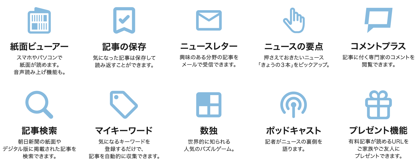 - 記者が現場の臨場感を声で届ける「ポッドキャスト」など、デジタル限定コンテンツも充実しています。