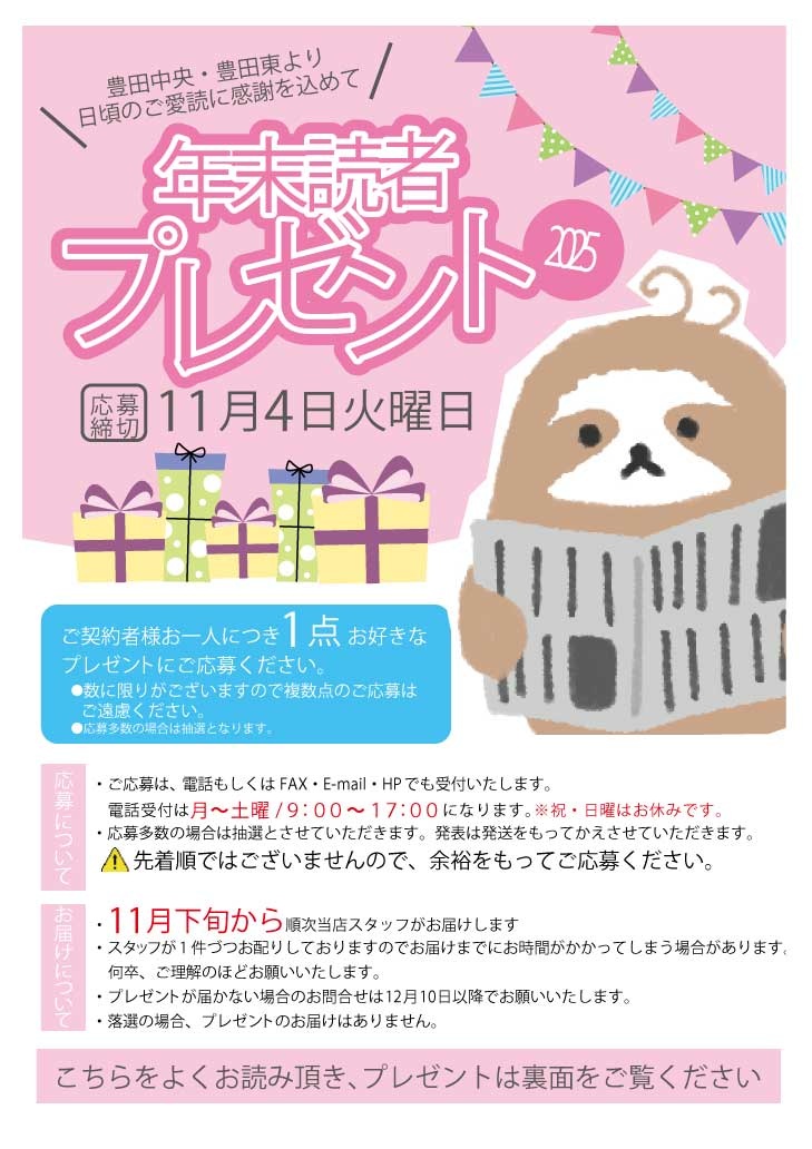 ※ASA豊田中央・東で新聞をご購読して頂いているご購読者のみ応募できます。