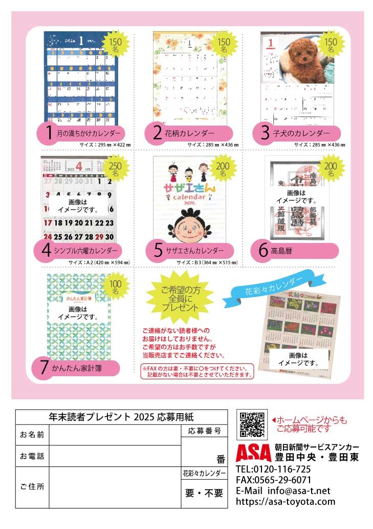 2025年度 ASA豊田中央・豊田東より 年末読者プレゼント